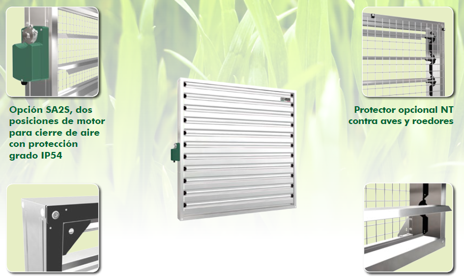 Vinculables a controles de ambiente en modalidad On/Off. Caja de protección y persianas de acero galvanizado. Disponible en 26″, 31″, 42″ y 53″. Versión KD desmontada también disponible para la auto-instalación.
