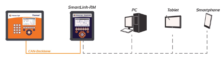 La aplicación permite operar los ordenadores del establo a distancia con su smartphone o tablet. Tras instalar el software en su dispositivo podrá establecer conexión con el ordenador del establo a través de internet y asumir su control. Esta aplicación resulta muy fácil de usar y entender, ya que las teclas y las pantallas son idénticas a las del ordenador. De este modo podrá responder con rápidez y precisión a las situaciones que se den en su establo, dondequiera que estéen ese momento. Puede operarse desde cualquier sitio y en cualquier momento.